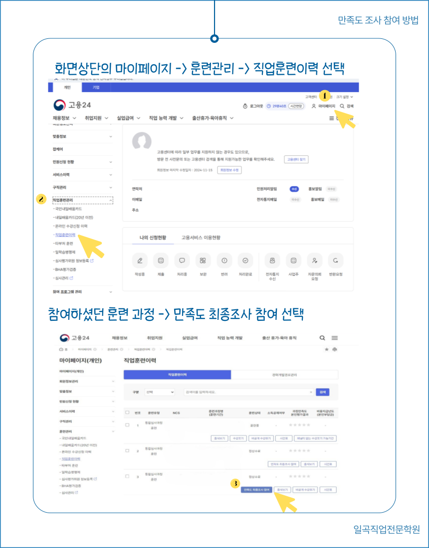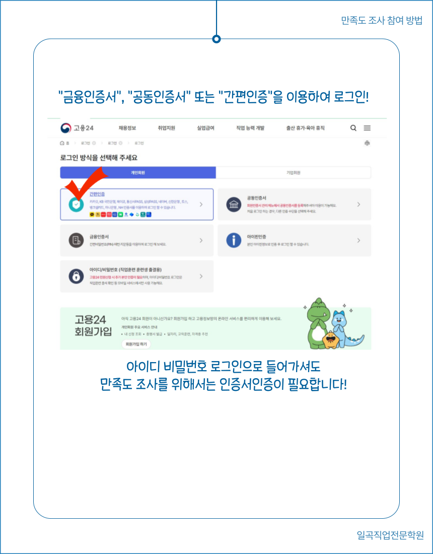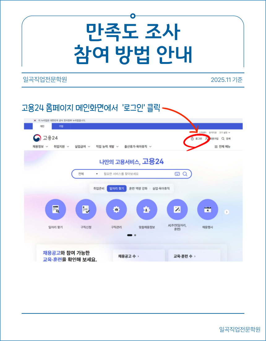 [고용24 온라인 만족도 조사 참여 방법안내]-pc버전